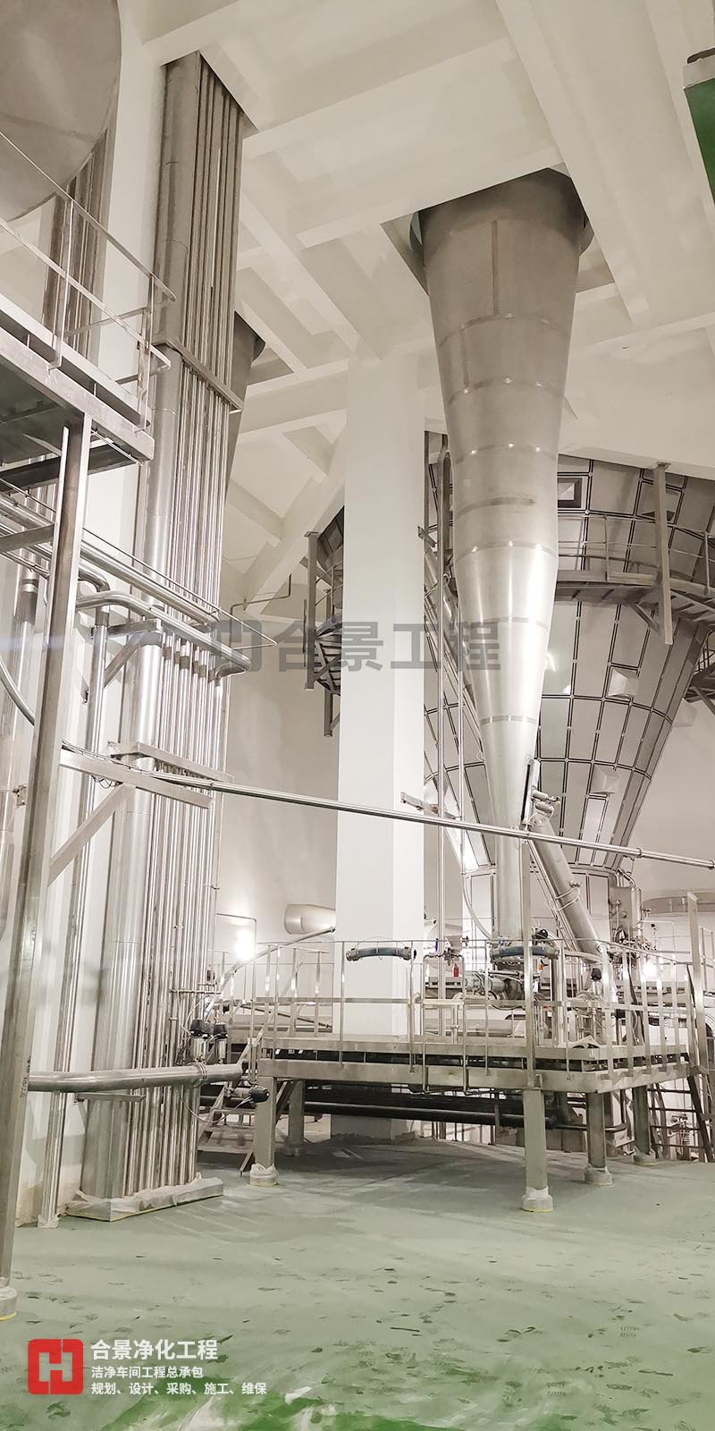 下圖為飛鶴乳業(yè)廠房?jī)艋?xiàng)目施工中效果圖:
